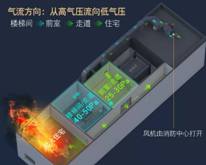 2)樓梯間與走道之間額壓差應(yīng)為40Pa-50Pa;