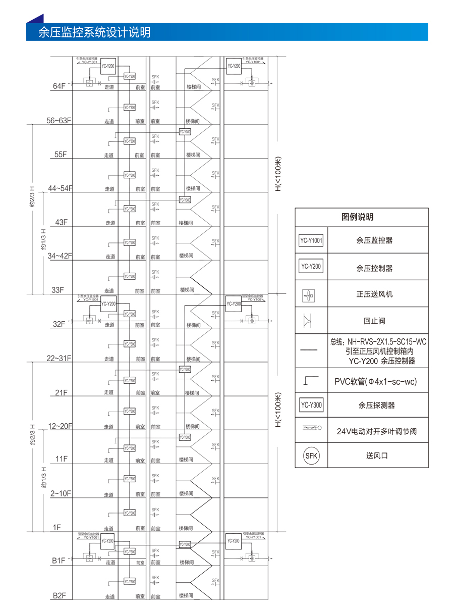 可實時顯示余壓控制器的“開啟/關閉/故障”狀態;可遠程控制余壓控制器的開啟/關閉;任意分布布線,簡化工程方案;